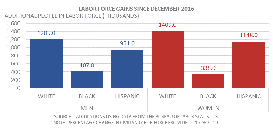 - White women have experienced the largest number of labor force gains over this period